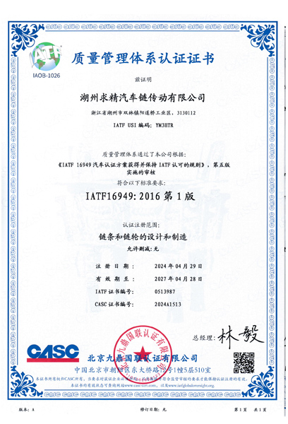 湖州求精汽車鏈傳動有限公司成立于1999年,注冊資金3000萬元,是汽車發動機用鏈條與正時系統研發及生產基地,公司座落于長江三角州經濟區中心的湖州市,公司現有員工200人,技術人員50人,其中研發人員25人
